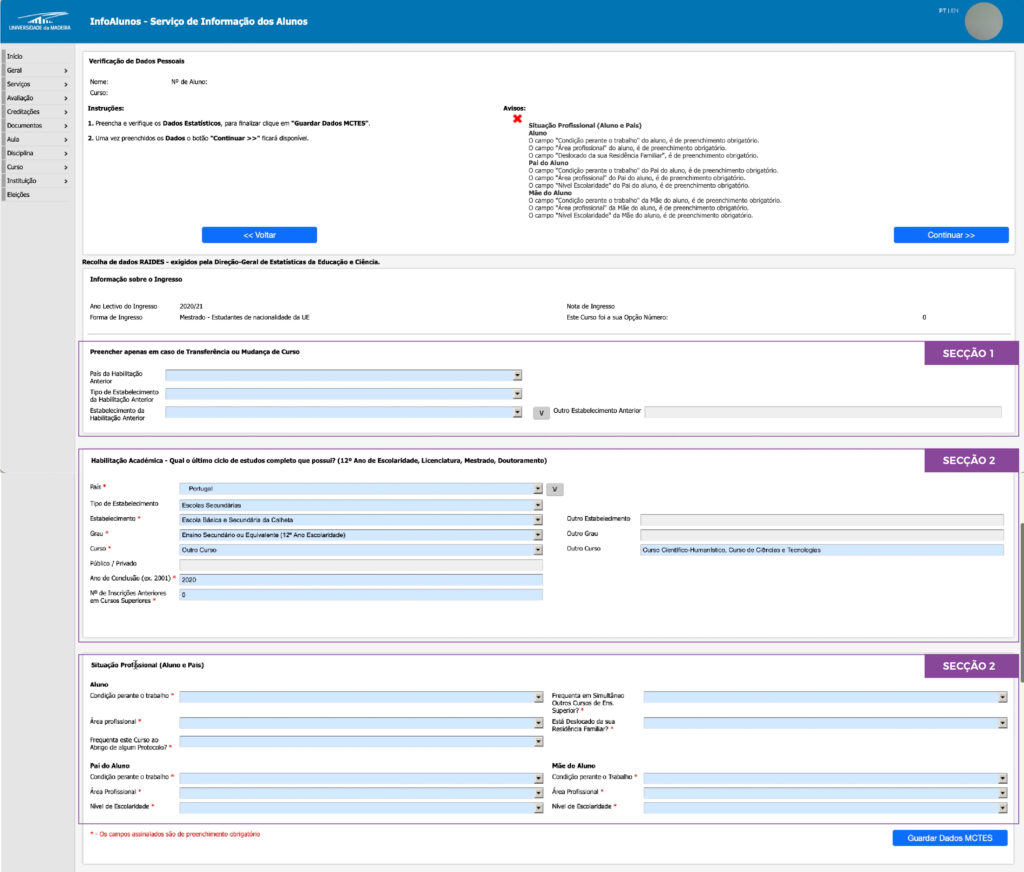 Matrículas - Inquérito RAIDES Tutorial